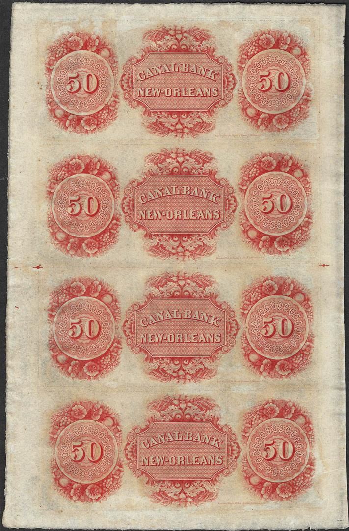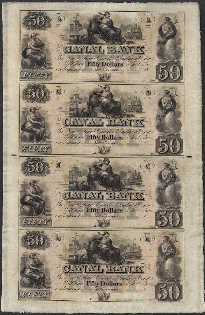 One Uncut Sheet of 1800's $50 Canal Bank Obsolete Notes.