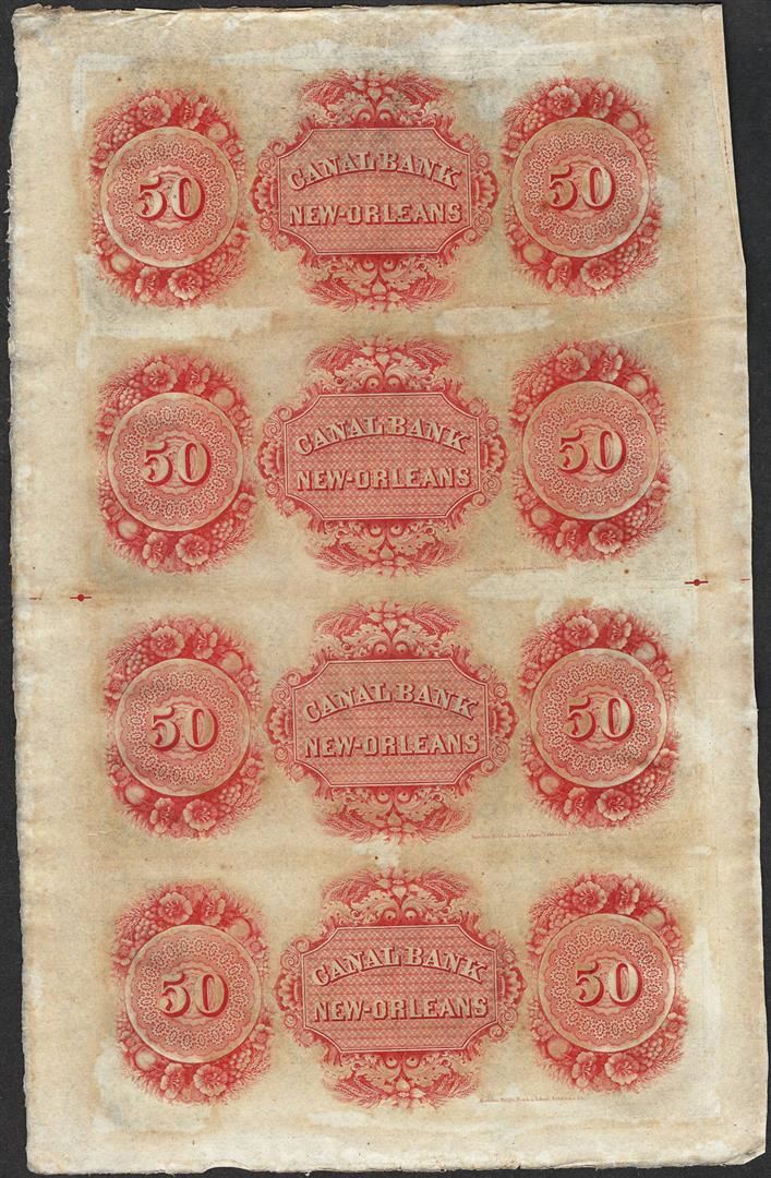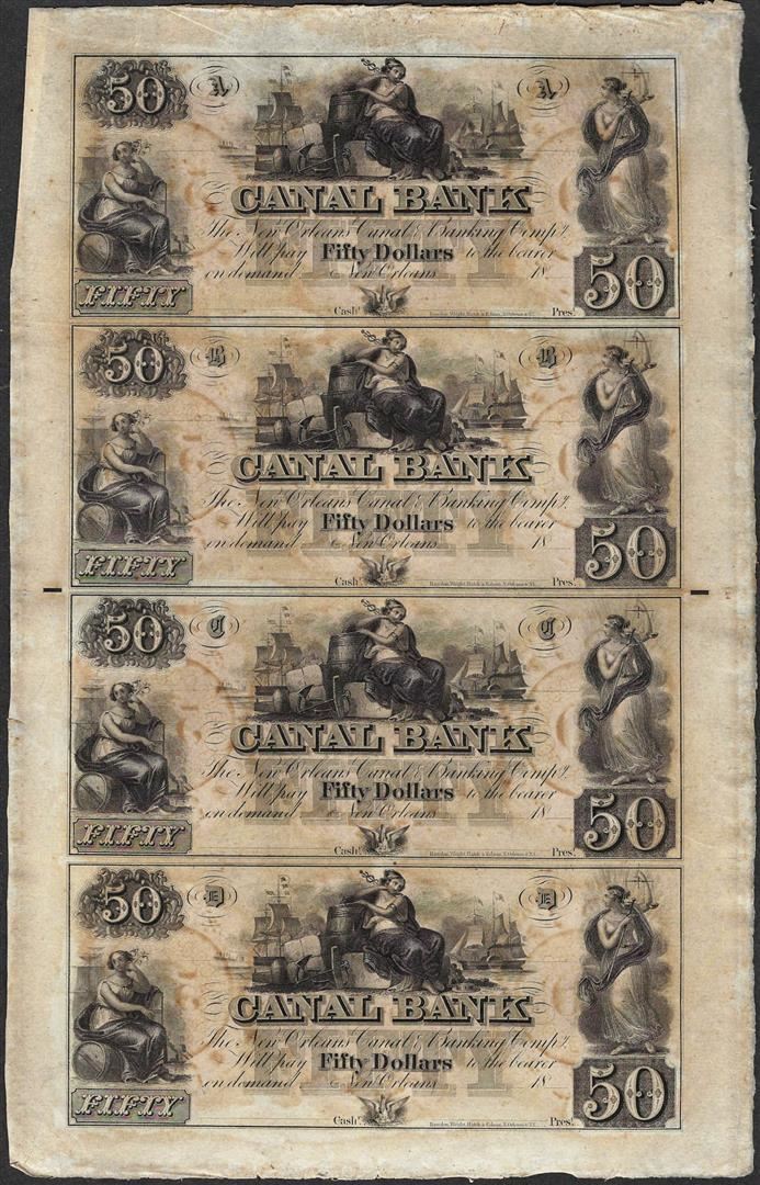One Uncut Sheet of 1800's $50 Canal Bank Obsolete Notes.