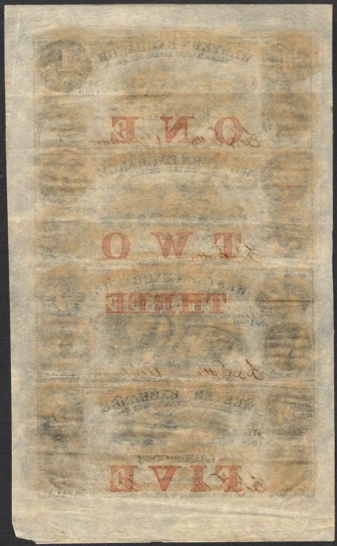 One Uncut Sheet of 1857 Western Exchange Fire & Marine Insurance Co. Obsolete Notes.