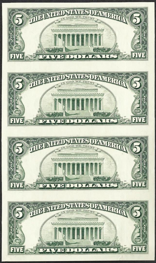 One Uncut Sheet of (4) 1995 $5 Federal Reserve Notes Atlanta.