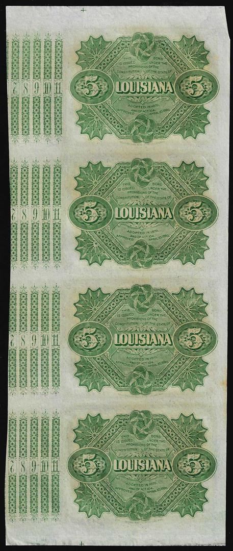 Uncut Sheet of (4) State of Louisiana Baby Bond Obsolete Notes