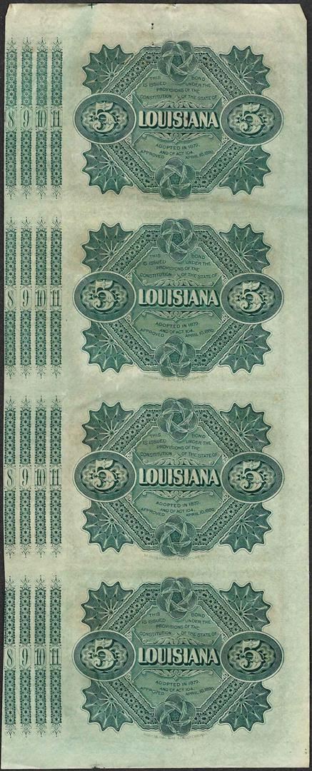 Uncut Sheet of (4) State of Louisiana Baby Bond Obsolete Notes