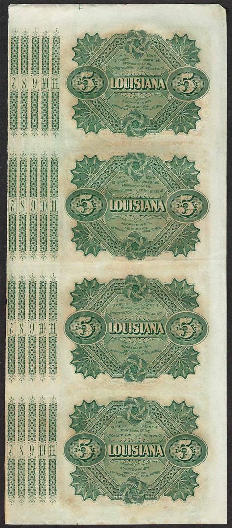 Uncut Sheet of (4) State of Louisiana Baby Bond Obsolete Notes