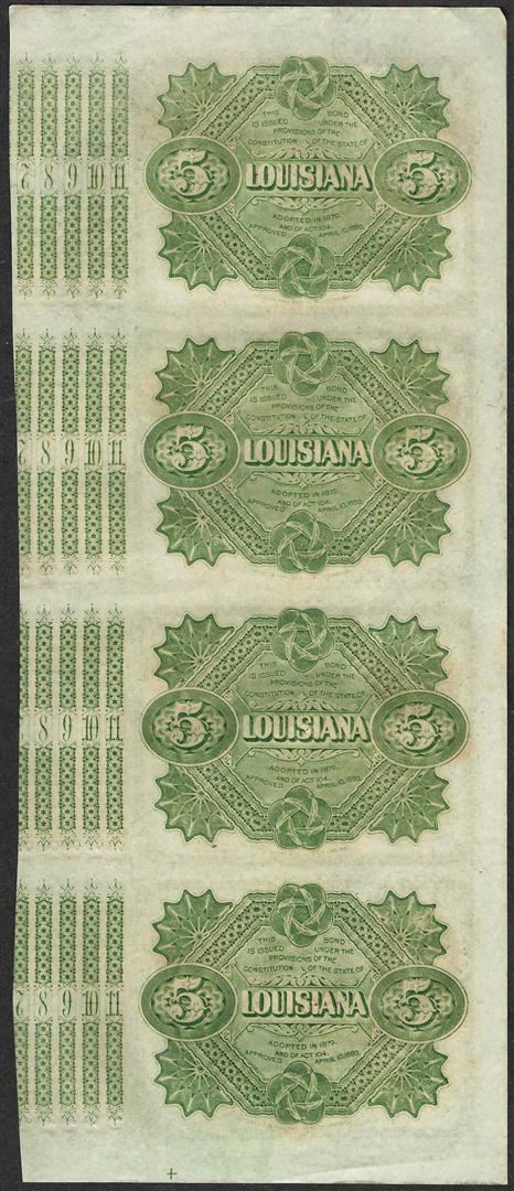 Uncut Sheet of (4) State of Louisiana Baby Bond Obsolete Notes