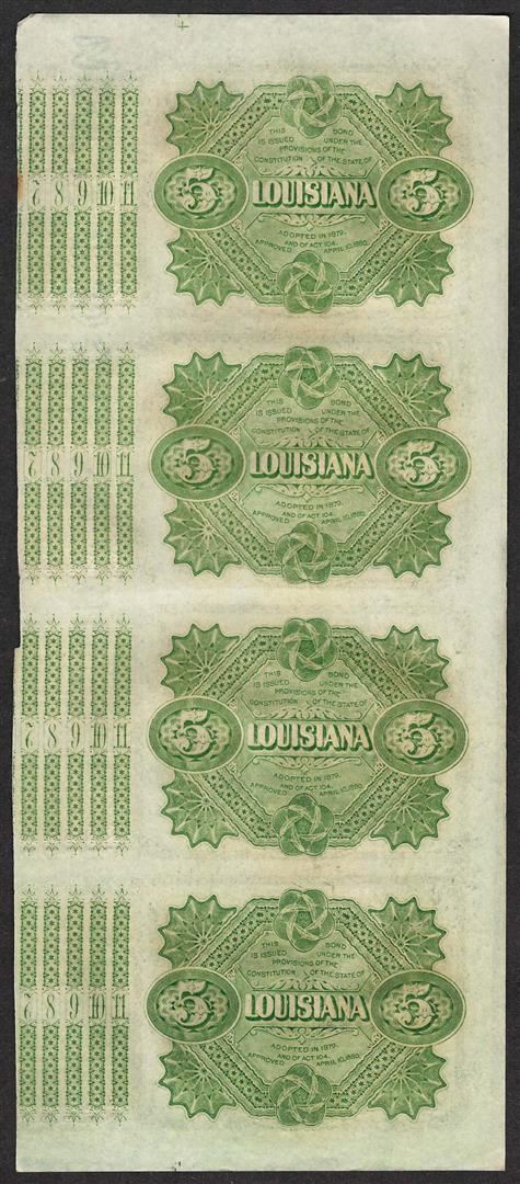 Uncut Sheet of (4) State of Louisiana Baby Bond Obsolete Notes
