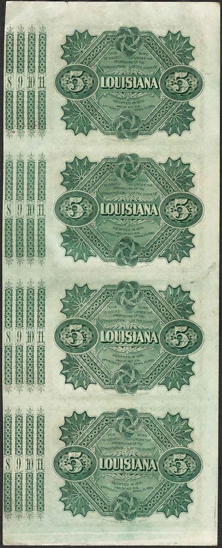 Uncut Sheet of (4) State of Louisiana Baby Bond Obsolete Notes