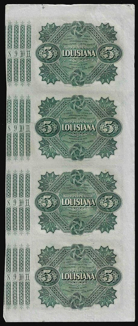 Uncut Sheet of (4) State of Louisiana Baby Bond Obsolete Notes