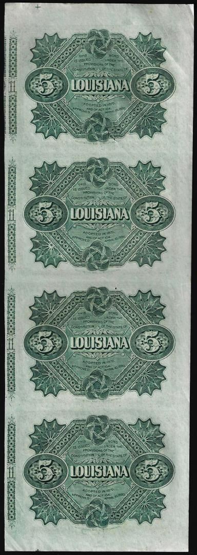 Uncut Sheet of (4) State of Louisiana Baby Bond Obsolete Notes