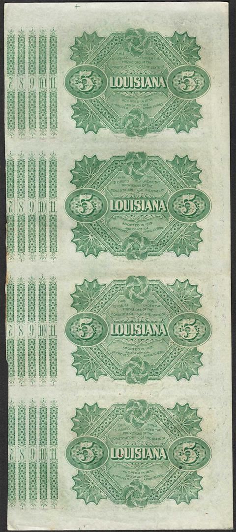 Uncut Sheet of (4) State of Louisiana Baby Bond Obsolete Notes