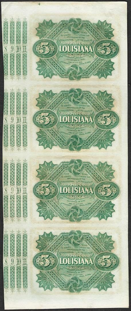 Uncut Sheet of (4) State of Louisiana Baby Bond Obsolete Notes