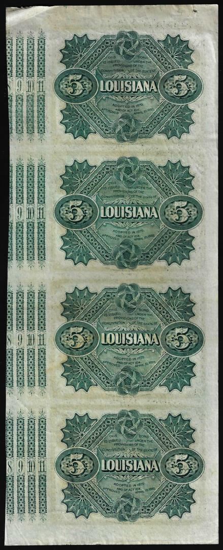 Uncut Sheet of (4) State of Louisiana Baby Bond Obsolete Notes
