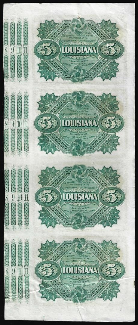 Uncut Sheet of (4) State of Louisiana Baby Bond Obsolete Notes