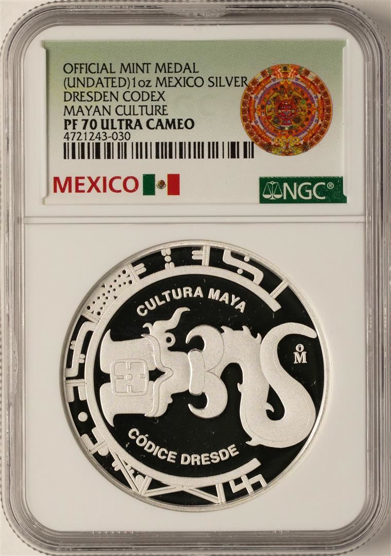 One Undated Mexico Silver Dresden Codex Silver Medal NGC PF70 Ultra Cameo. NGC Certified.