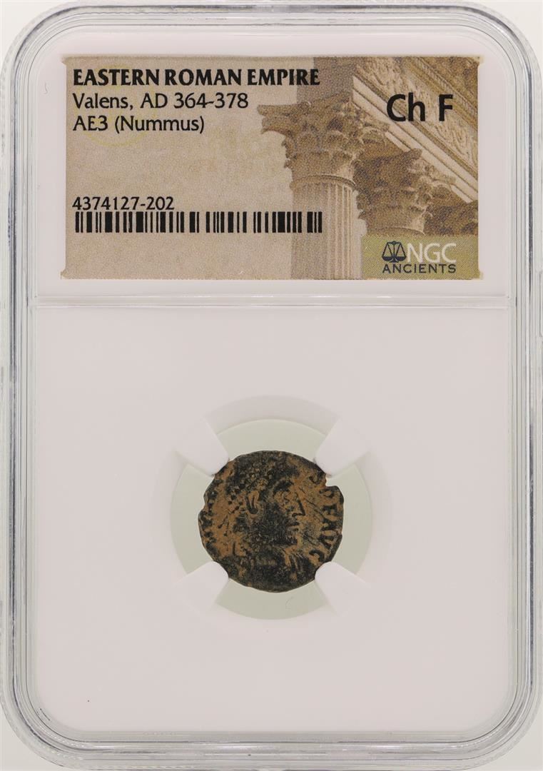 One Valens 364-378 AD Ancient Eastern Roman Empire Coin NGC CH F. NGC Certified.