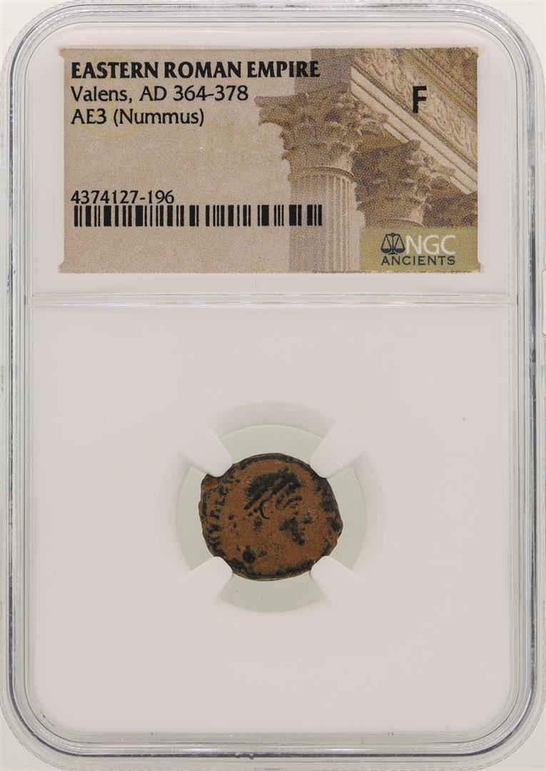 One Valens 364-378 AD Ancient Eastern Roman Empire Coin NGC F. NGC Certified.