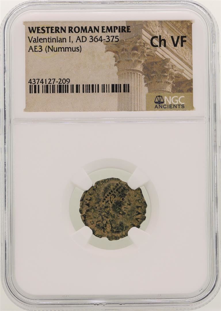 One Valentinian I 364-375 AD Ancient Western Roman Empire Coin NGC CH VF. NGC Certified.