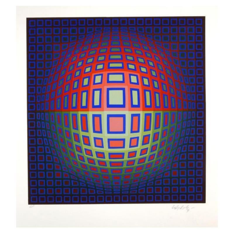 "Blue Composition", is a limited edition Serigraph on Paper by Victor Vasarely (1908-1997). Numbered and hand signed, this piece is accompanied by a letter of authenticity. Measures approximately 18" x 18" (image).