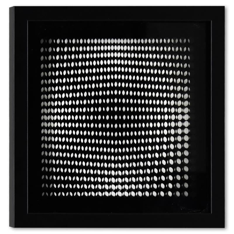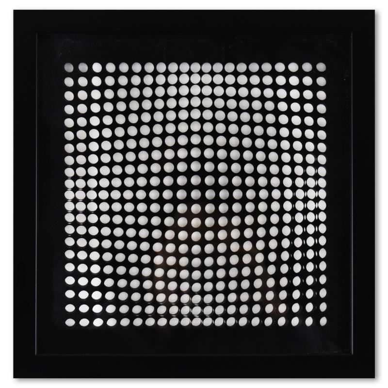 "Trois Dimensions Optique de la Serie Cinetiques" is a dimensional artwork, published in 1973, by Victor Vasarely (1908-1997). This piece comes custom framed. This piece comes with a catalogue raisonne of Vasarely's work with forward from Marcel Joray (paper back, published 1976). Includes Letter of Authenticity. Measures approx. 11.5" x 11.5" (frame), 9" x 9" (image).