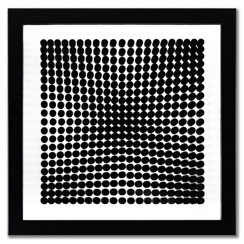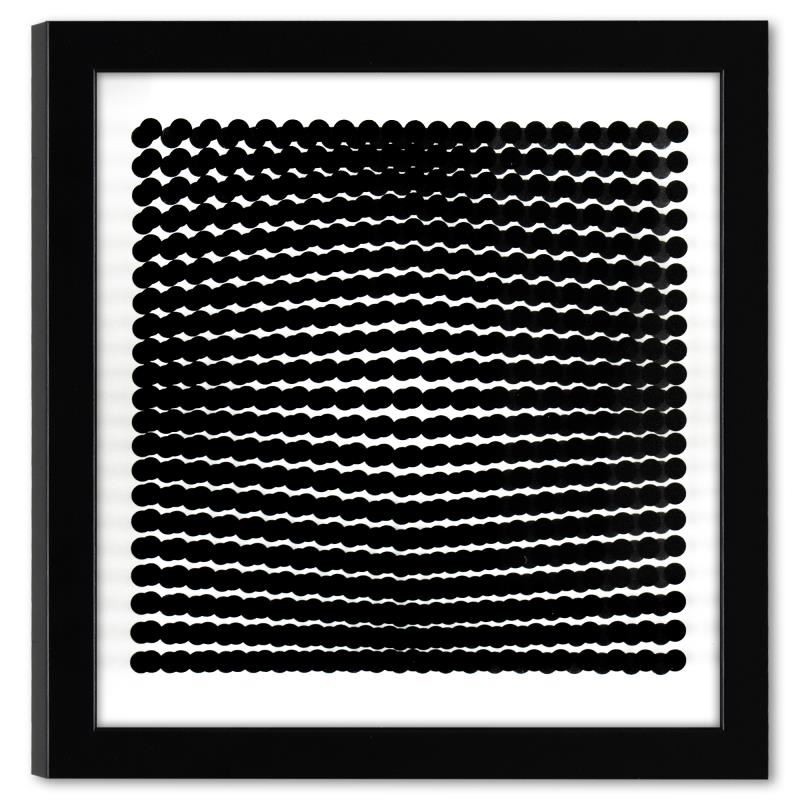 "Trois Dimensions Optique de la Serie Cinetiques" is a set of 8 dimensional artworks, published in 1973, by Victor Vasarely (1908-1997). These pieces come custom framed, with a letter of authenticity and with a 1976 Vasarely paperback. Measures approx. 11.5" x 11.5" (frame), 9" x 9" (image).