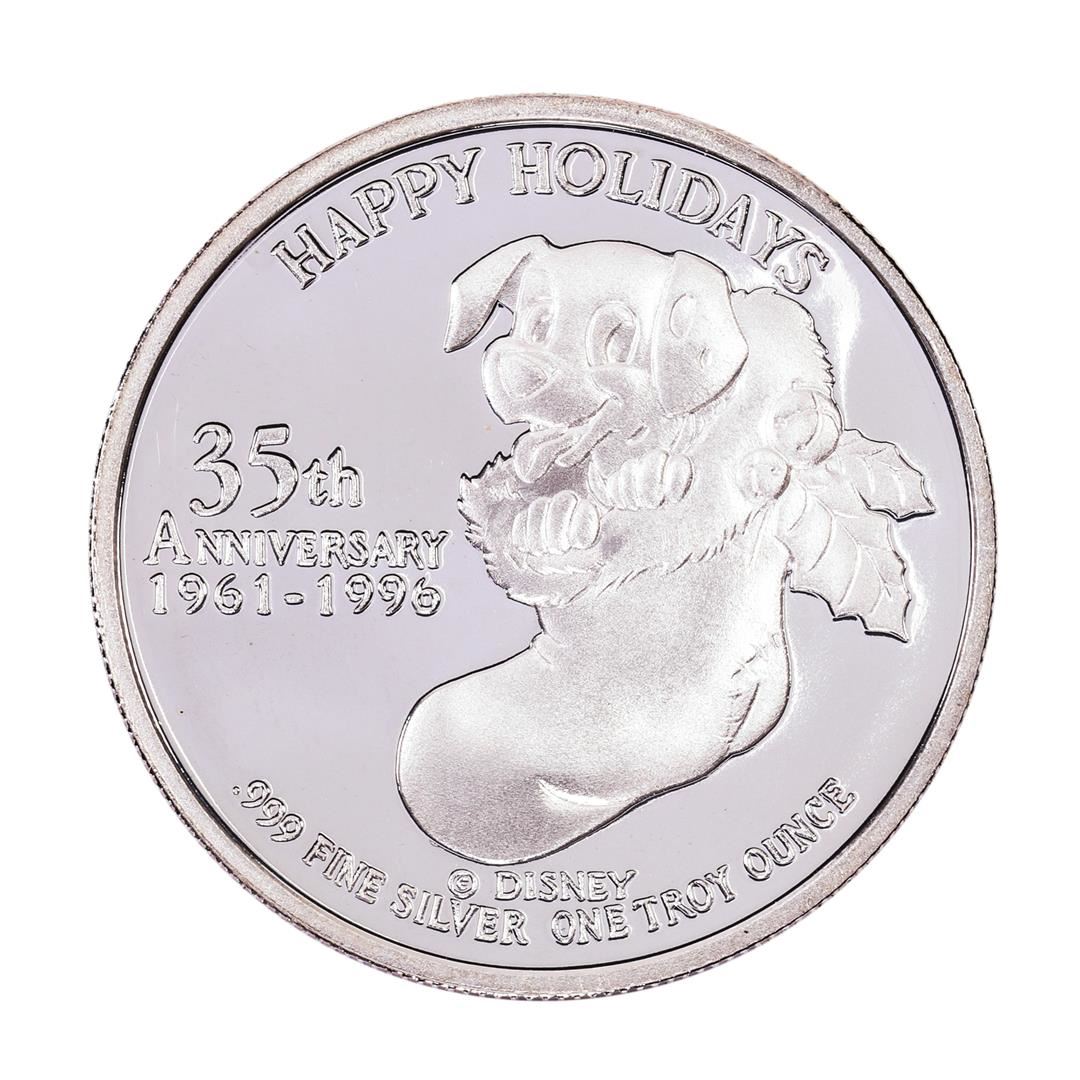 One Vintage 1996 Walt Disney's 101 Dalmatians 1 Oz. .999 Fine Silver Round.