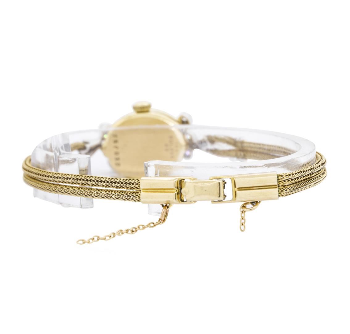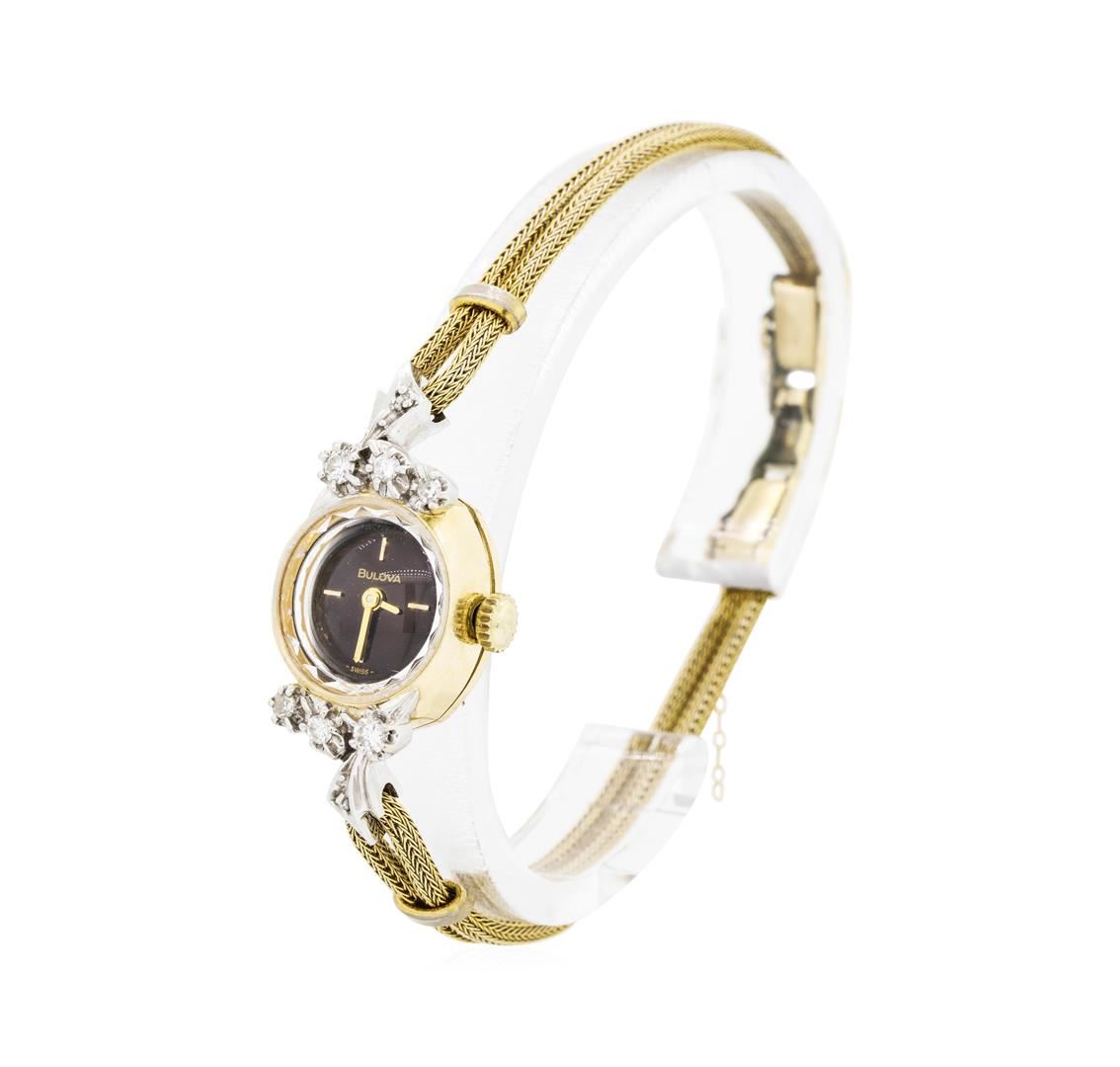 One vintage Bulova women's wristwatch weighing 11.5 grams with a 14KT yellow gold case and gold plated bracelet. The case contains diamonds weighing 0.25ctw.