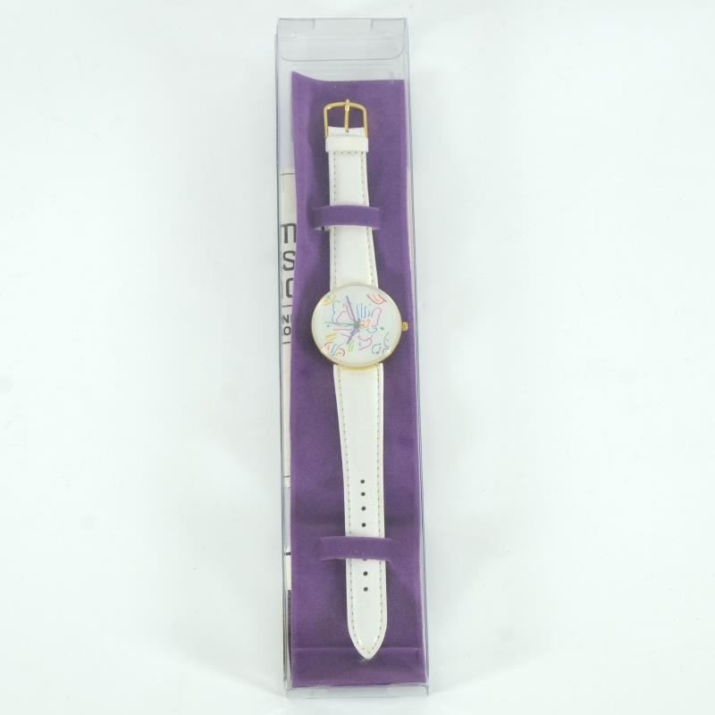 This is a vintage Peter Max wrist watch created for the Japanese market in 1991. This watch comes in the original packaging and with paperwork. Due to the age of the watch the battery will need to be replaced. A replacement battery will be included in this auction complementary. Measures approx. 1.5" x 1.5" (watch face).