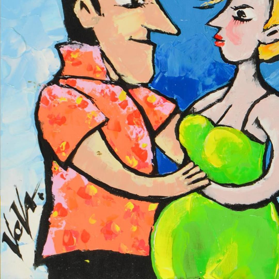 This is an original acrylic painting on canvas by Vova, hand signed by the artist. Includes Letter of Authenticity. Measures approx. 32" x 16" (image).