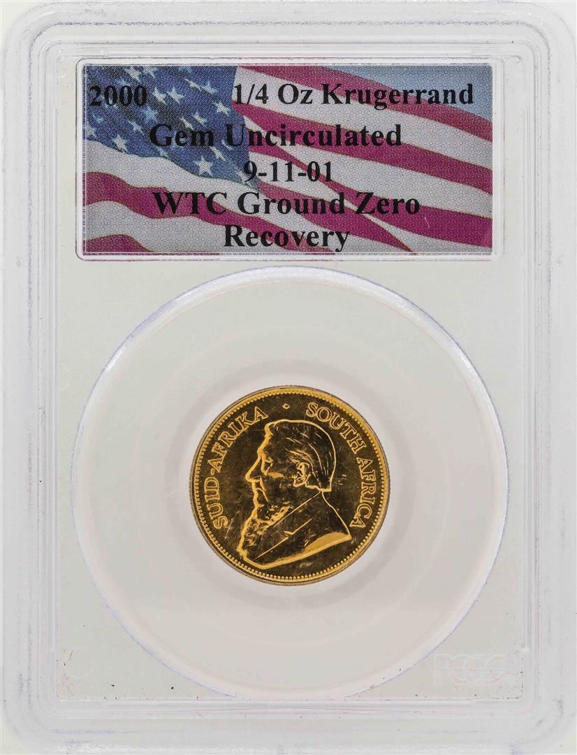 One WTC Ground Zero Recovery 2000 1/4 oz. Krugerrand Gold Coin PCGS Gem Uncirculated. PCGS Graded.