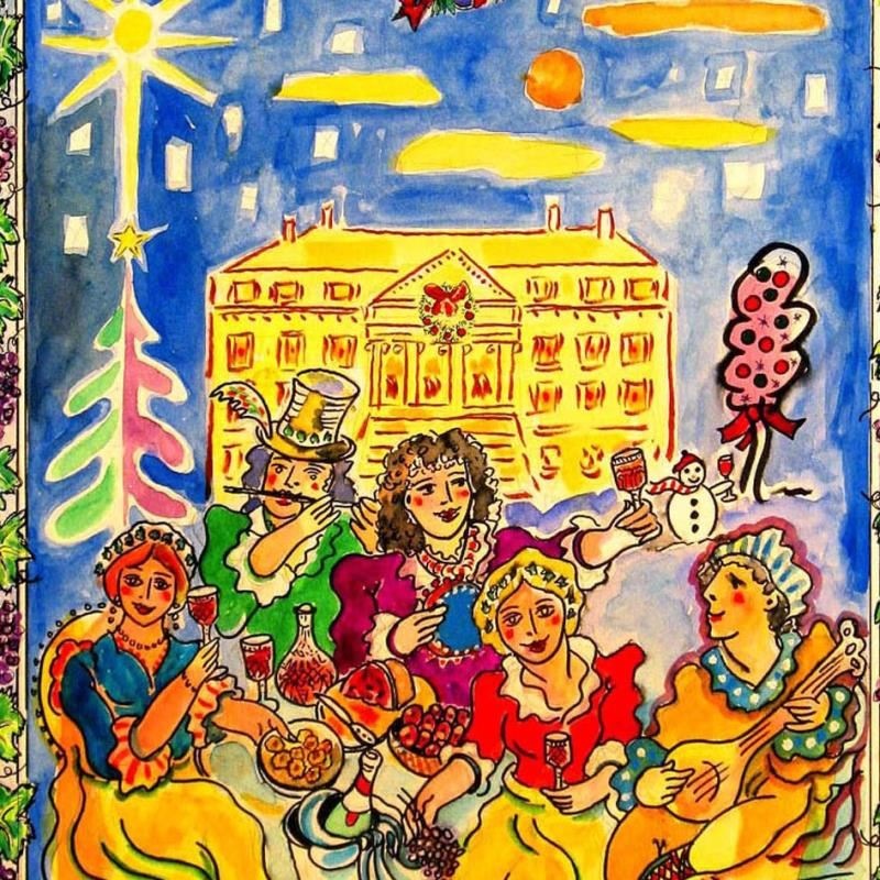 Wayne Ensrud "Fete De Chateau Margaux" Original Mixed Media On Board