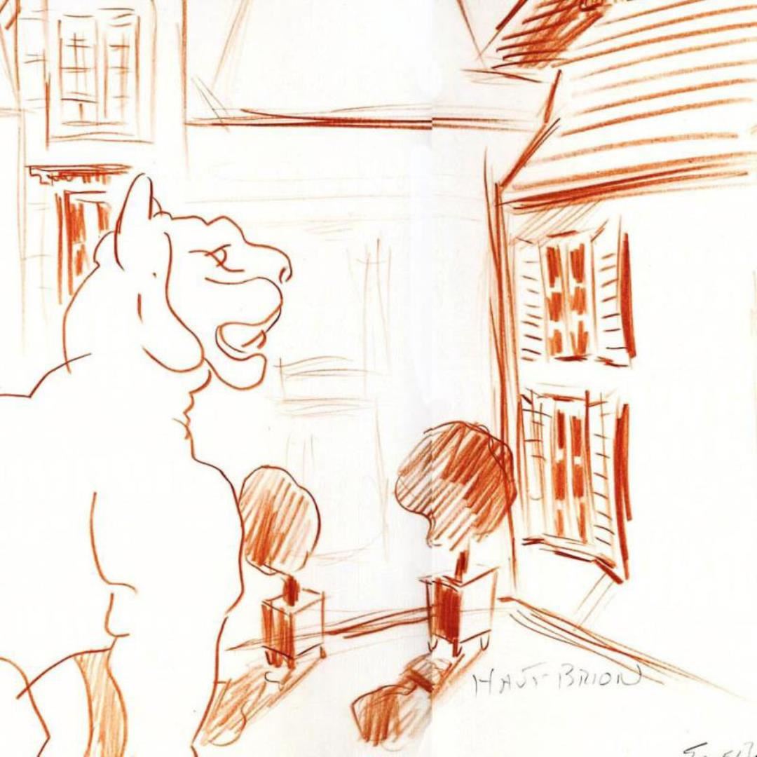 Wayne Ensrud "Lion Statue in the Courtyad of Chateau Haut-Brion" Original Pastel