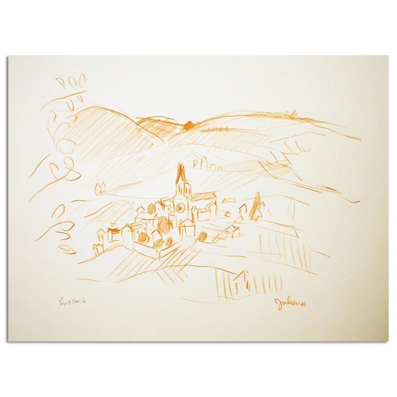 Wayne Ensrud "View Of Julienas In Beaujolais, France - 2" Original Mixed Media