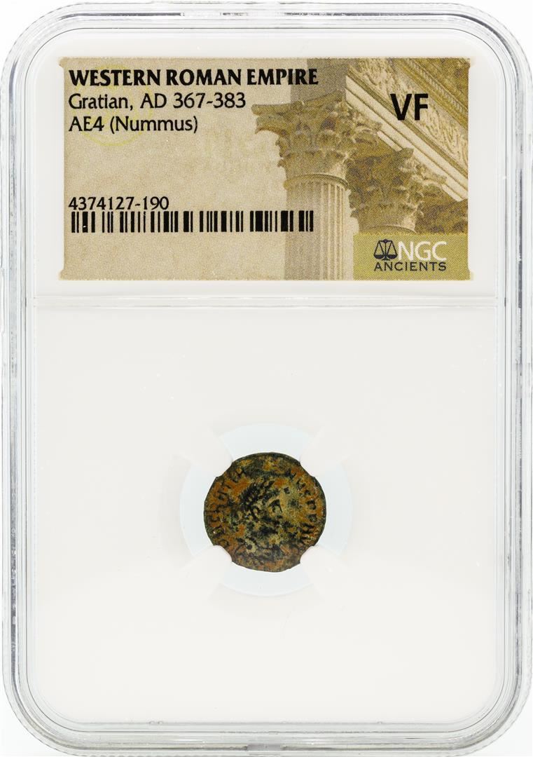 Western Roman Empire AD 367-383 Gratian AE4 Nummus Coin NGC VF