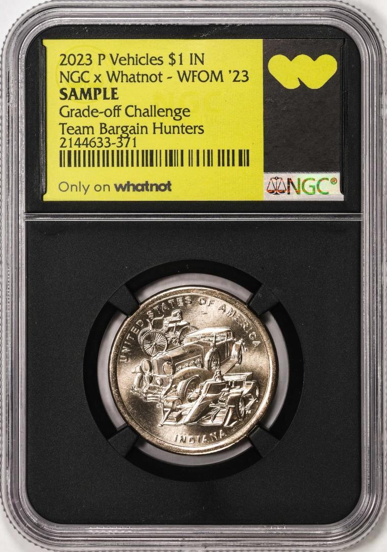 One Whatnot WFOM 2023-P $1 Vehicles Coin NGC Grade-off Challenge Sample Slab Team Bargain Hunters. NGC Certified.
