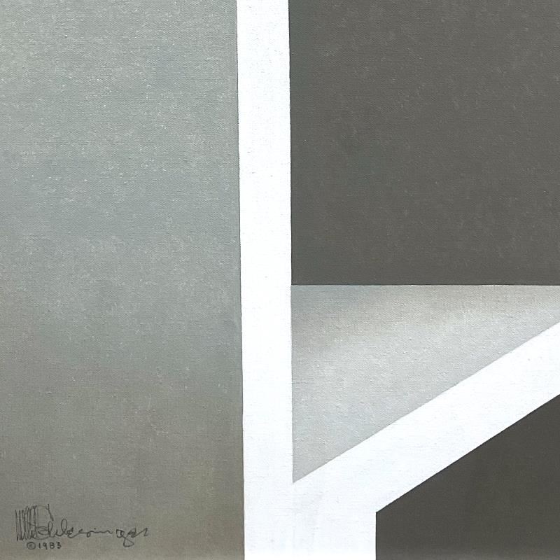 This is an original oil painting on canvas by William Schlesinger (1915-2011), dated 1983 and hand signed by the artist. This piece comes framed in a box frame; due to the age of the piece there is minor wear on the corners and edges of the frame. Includes Letter of Authenticity. Measures approx. 42.5" x 36.5" (frame), 42" x 36" (image).
