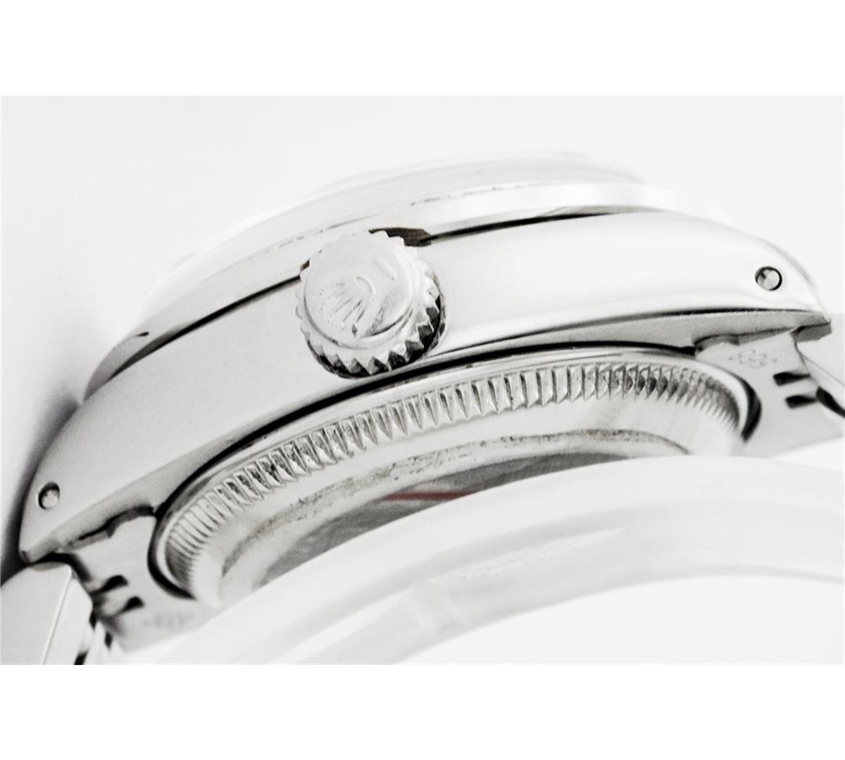 One Womens Rolex Datejust Polished Bright with Satin Finish, Serviced & Electronically Tested, Stainless Steel Case:26mm, Stainless Steel Crown, Custom Bezel: 18K White Gold Sapphire Beadset Diamond Bezel, Diamond + Gem Count: 28 Diamonds + 4 Sapphires Total Weight .70 Carat, Clarity: SI-VS, Color: G to H. Custom Crystal: Synthetic Sapphire Cyclops Lens. Movement: Automatic Winding Movement Caliber 2030. Custom Dial: Blue Mother Of Pearl Diamond Dial, Diamond Count: 10 Diamonds, Clarity: SI-VS, Color:G to H. Date Window: 3 O'Clock Position Date Display, Non Quickset, Model: Datejust, Condition: G-6 Extra Fine. Bracelet:Stainless Steel Jubilee. Bright Polish & Satin Finish. 5.5 Inch Length, Adjustable. Standard Clasp, With Rolex Logo.