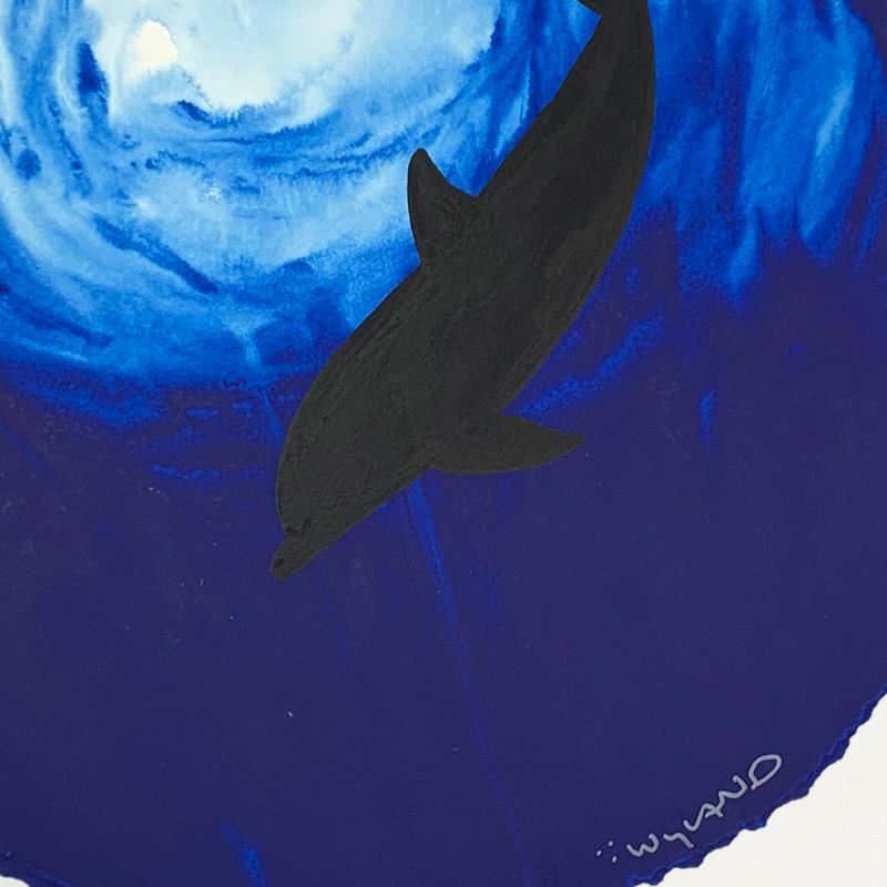 "Dolphin Blue" is an original painting, watercolor on deckle edge paper by Wyland. Hand signed by the artist, the piece comes custom framed and with a letter of authenticity. Measures approximately 30" x 30" (framed), 19.5" x 19.5" (image).