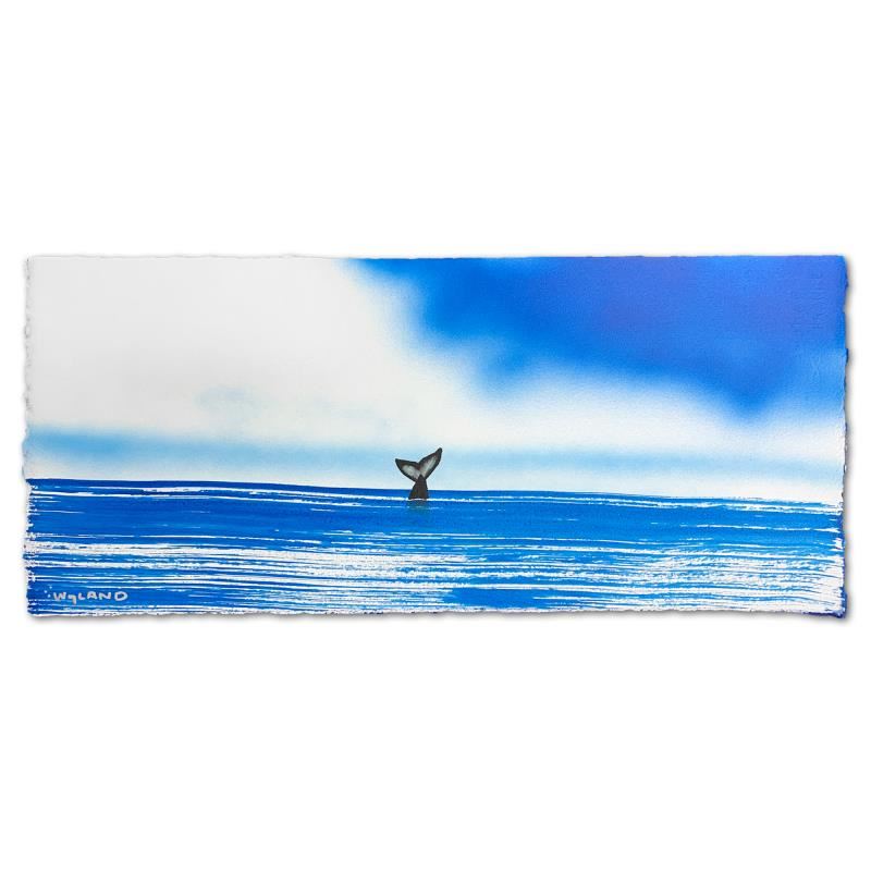 "Fluke" is an original painting acrylic on deckle edge paper by Wyland. Hand signed by the artist, the piece comes custom framed and with a letter of authenticity. Measures approximately 14.5" x 26.5" (framed), 10.5" x 22.5" (image). This item requires special handling and may have a longer than usual turnaround