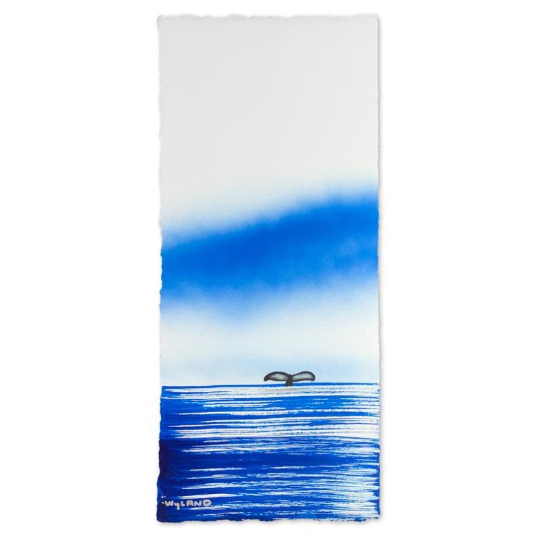 "Fluke" is an original painting acrylic on deckle edge paper by Wyland. Hand signed by the artist, the piece comes custom framed and with a letter of authenticity. Measures approximately 26.5" x 14.5" (framed), 22.5" x 10.5" (image). This item requires special handling and may have a longer than usual turnaround