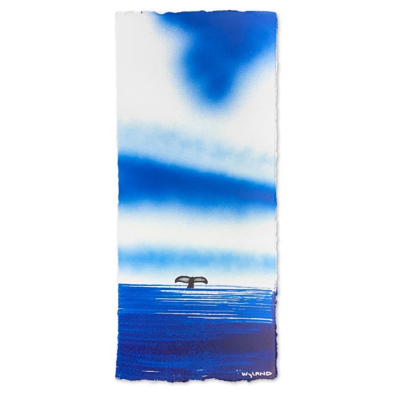 "Fluke" is an original painting acrylic on deckle edge paper by Wyland. Hand signed by the artist, the piece comes custom framed and with a letter of authenticity. Measures approximately 26.5" x 14.5" (framed), 22.5" x 10.5" (image). This item requires special handling and may have a longer than usual turnaround