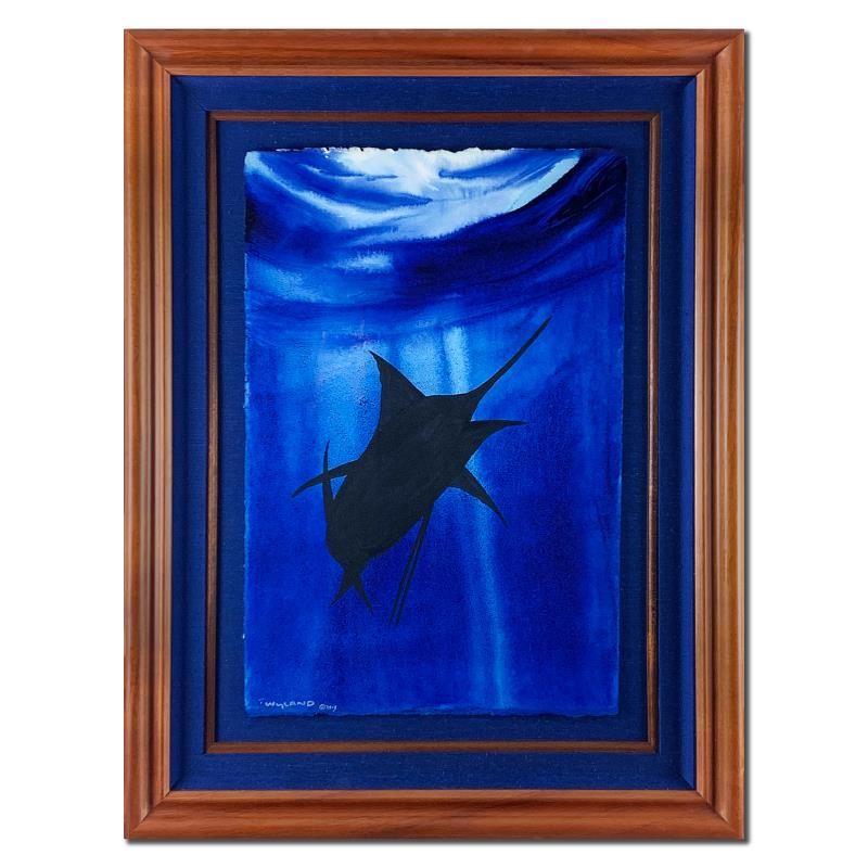 "Marlin" is an original Original Painting painting on Paper by Wyland that is hand signed and comes with a certificate of authenticity. Measures approximately 24" x 42" (framed), 15" x 22" (image).