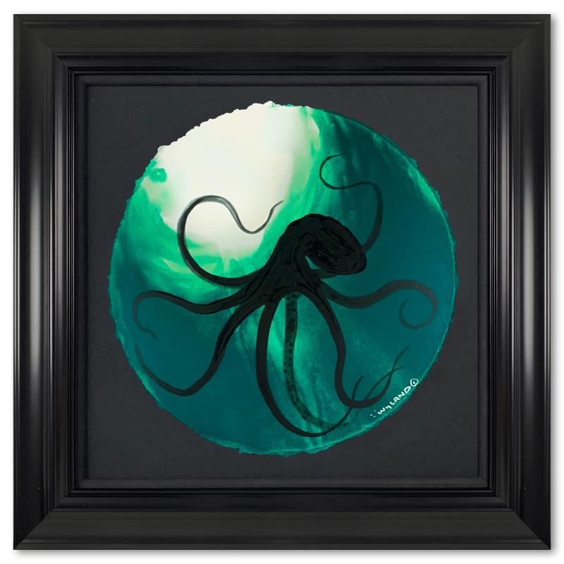 "Octopus in Green" is an original painting, watercolor on deckle edge paper by Wyland. Hand signed by the artist, the piece comes custom framed and with a letter of authenticity. Measures approximately 30" x 30" (framed), 19.5" x 19.5" (image).