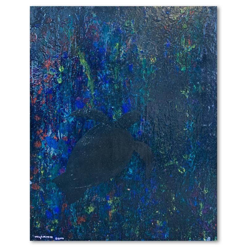 This is an original painting on board by Wyland. Hand signed by the artist, this piece includes a letter of authenticity. Measures approximately 20" x 16".