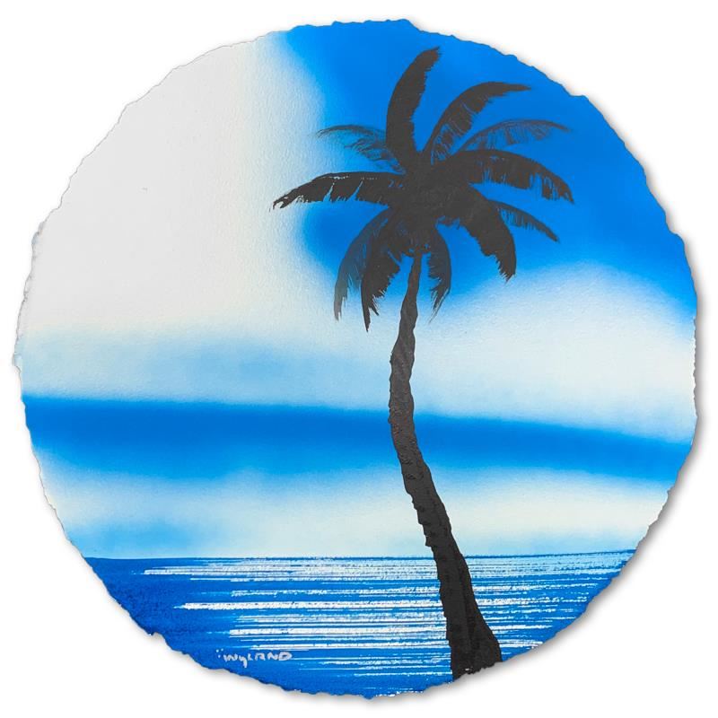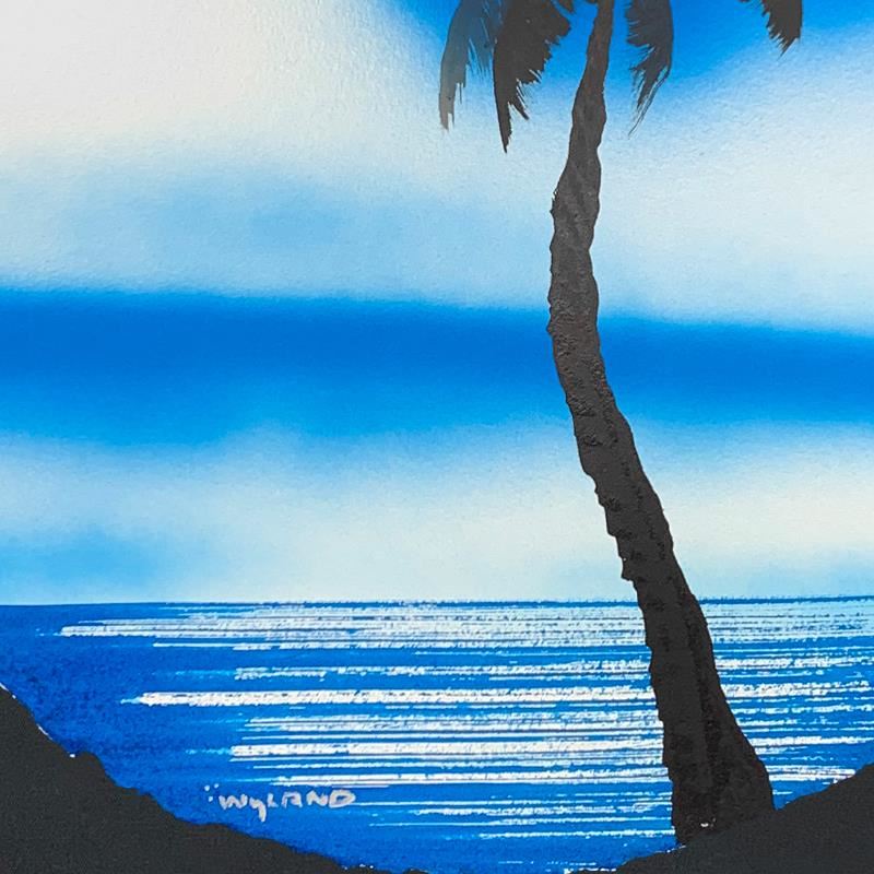 "Palm Trees" is an original painting, watercolor on deckle edge paper by Wyland. Hand signed by the artist, the piece comes custom framed and with a letter of authenticity. Measures approximately 30" x 30" (framed), 19.5" x 19.5" (image).