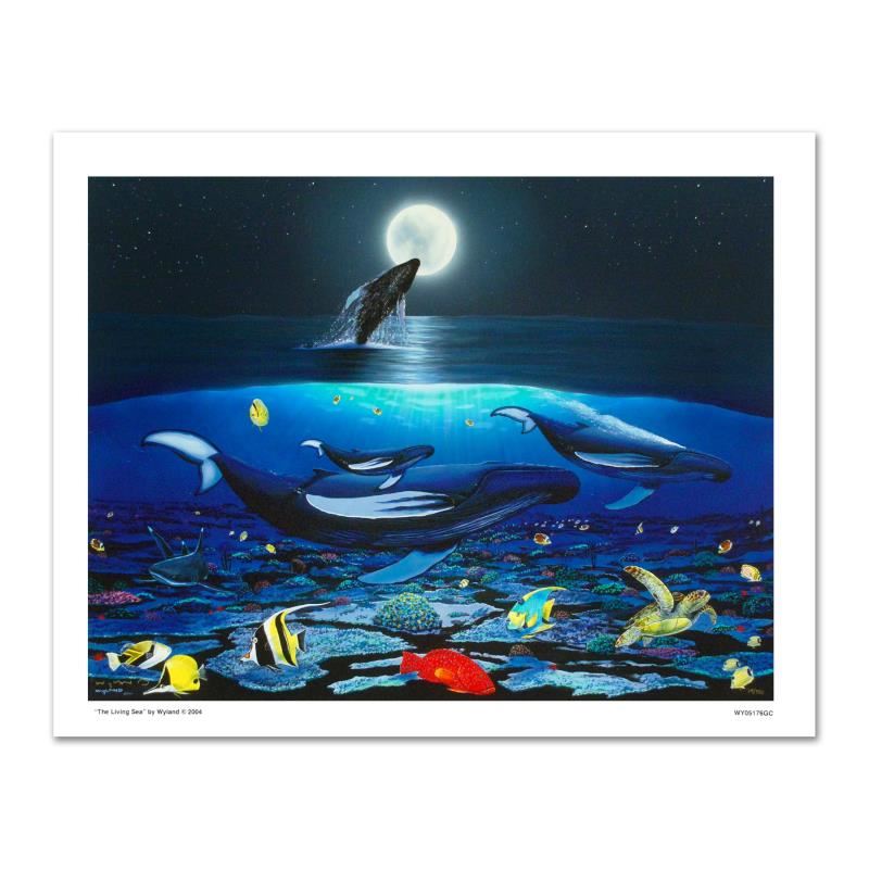 Wyland's boundless love of nature is clearly conveyed in each of his works with exacting detail. "The Living Sea" is a limited edition giclee on canvas, numbered and hand signed by Wyland! Includes Certificate of Authenticity! Measures approx. 27" x 20" (image).