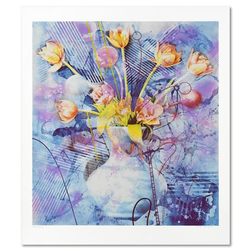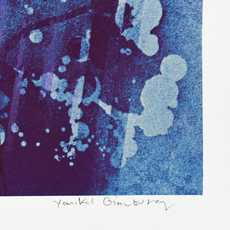 "Rhapsody In Blue" is a limited edition serigraph on paper by Yankel Ginzburg, numbered and hand signed by the artist. Includes Letter of Authenticity. Measures approx. 37" x 45" (border), 33" x 38" (image).