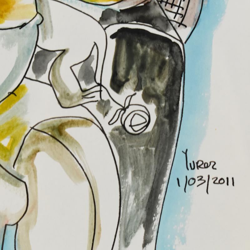 This is an original mixed media watercolor painting on paper by Yuroz, hand signed by the artist. This piece comes custom framed. Includes Letter of Authenticity. Measures approx. 22.5" x 25.5" (frame), 9" x 12" (image).