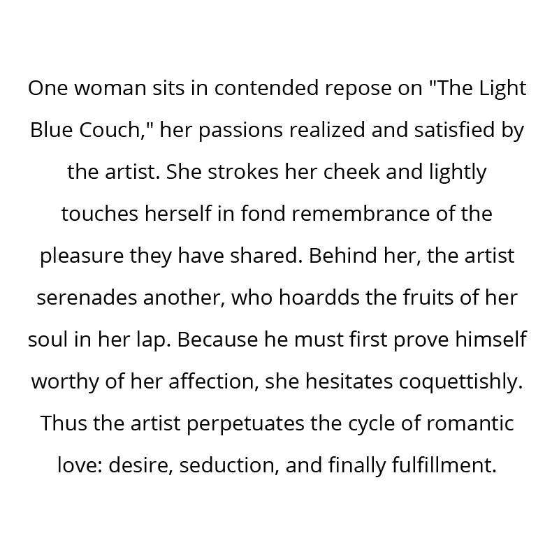 "The Light Blue Couch" is a limited edition serigraph on canvas by Yruoz. The piece is hand signed by the artist, numbered, and accompanied by a certificate of authenticity. Measures approximately 36" x 36" (image).