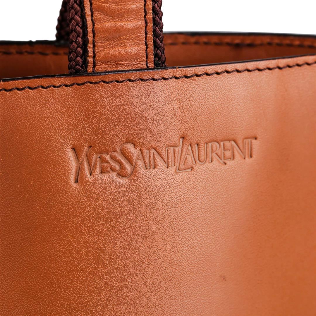This Authentic Yves Saint Laurent purse is made from smooth and durable Brown Leather with nylon lace-up detail on the front. The roomy bucket bag design is great for carrying everyday essentials and then some. Dark Brown interior features a zippered compartment and magnetic button closure. Yves Saint Laurent is stamped on the front right-hand corner of the bag. Great Pre-loved condition with minor wear. Please see photos.