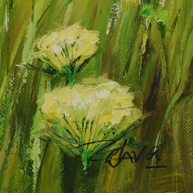 This is an original acrylic painting on canvas by Zahra, hand signed by the artist. Includes Letter of Authenticity. Measures approx. 36" x 24" (image).