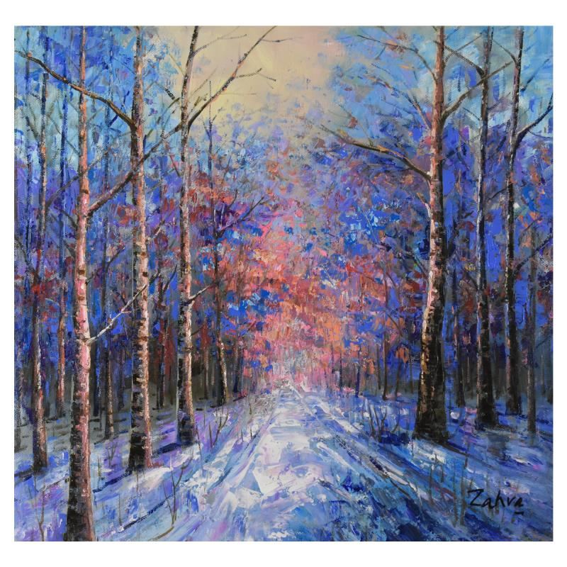 This is an original acrylic painting on canvas by Zahra, hand signed by the artist. Includes Letter of Authenticity. Measures approx. 36" x 36" (image).